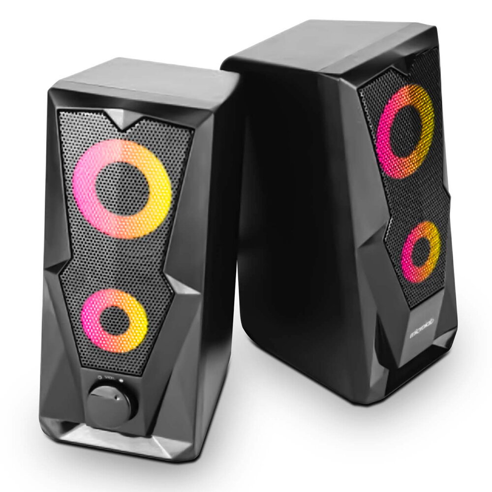 Акустика относится к компактному формату 2.0 и имеет общую мощность 10 Вт, что позволяет организовать объемное и насыщенное звучание при просмотре видеороликов, прослушивании музыкальных треков или в играх. Корпуса колонок имеют наклоненную форму и направляют звук непосредственно к слушателю.