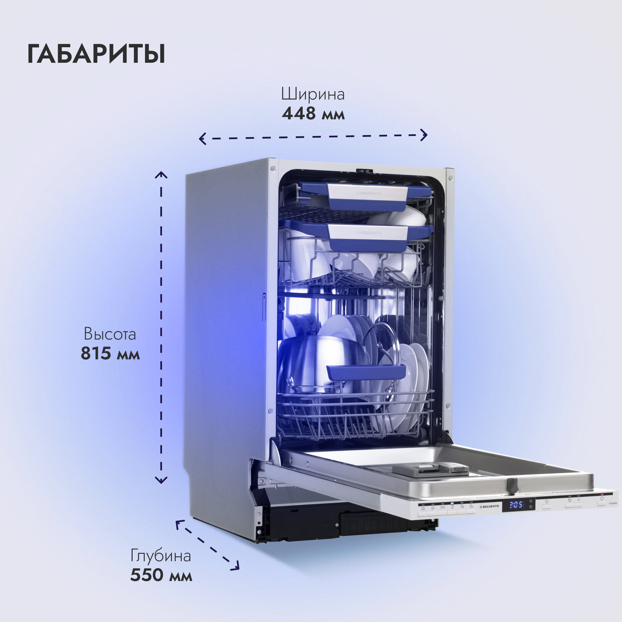 Встраиваемая посудомоечная машина Delvento VGB4602 серебристый