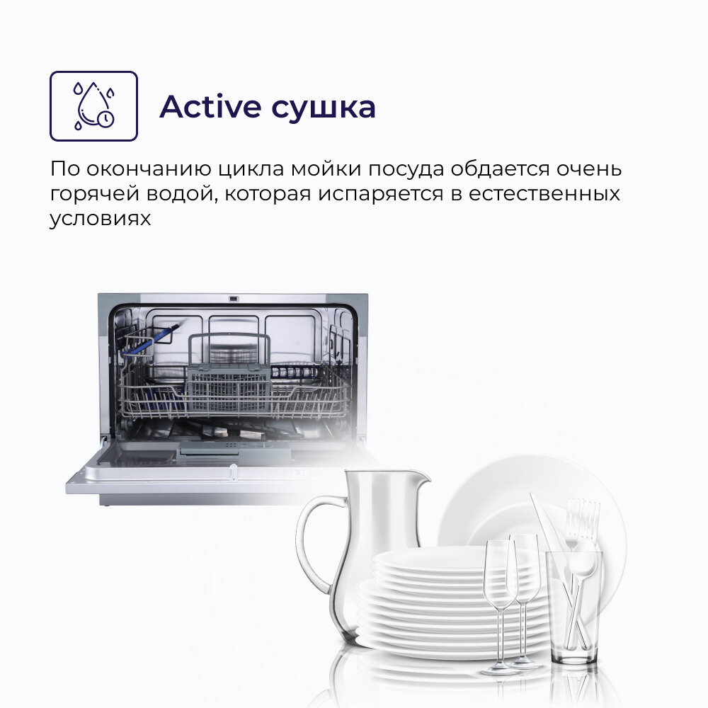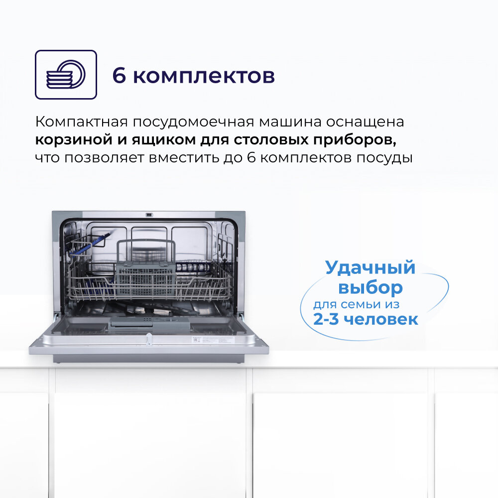 Настольная посудомоечная машина Delvento надолго станет вашим настоящим помощником.Выбор 7 программ. LED цифровой дисплей с кнопочным управлением, индикация времени.Приличная комплектов посуды: 6.