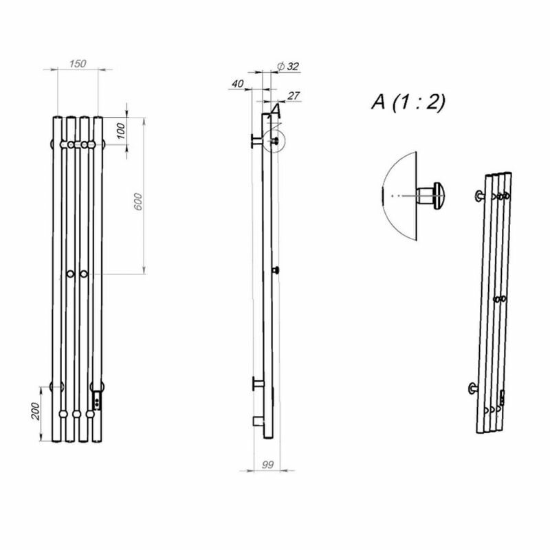 Отличается низким энергопотреблением, компактными размерами и стильным современным видом — станет неотъемлемой частью интерьера ванной комнаты. Товар изготовлен с применением технологии «сухой ТЭН» - нагревательным элементом в нем является нагревательный кабель, разогревается до максимума за 20-30 минут.Уникальная конструкция позволяет осуществить подключение к электросети, где бы ни находилась розетка - справа или слева! Коробка под скрытый монтаж идет в комплекте с изделием и окрашена в цвет корпуса! Что позволяет осуществить современный безопасный монтаж полотенцесушителя на стене и избавиться от свисающих проводов. Если же у вас нет возможности подключить изделие скрытым способом - Кабель с вилкой для подключения изделия через электрическую розетку тоже в комплекте. Кабель, входящий в комплект, имеет цвет: у черного полотенцесушителя — черный, у цвета хром — белый, у белого — белый. Количество перекладин зависит от высоты полотенцесушителя, все перекладины полноценно прогреваются, их удаленность от стены позволяет без труда повесить банное полотенце. цвет хром: полотенцесушитель имеет зеркальное покрытие, которое не облезает и не темнеет со временем — т. к. наши изделия изготовлены из нержавеющей стали марки AISI 304 и отполированы до блеска с помощью электроплазменной полировки. цвет черный/ белый: полотенцесушитель имеет надежное покрытие современной полимерной краской, которая устойчива к влажности и высоким температурам, обладает наивысшими показателями цветоустойчивости и экологичности. Процесс окрашивания происходит в заводских условиях, где изделие проходит двойной контроль отдела качества. На корпусе есть блок управления с 2-мя кнопками и 2-мя рядами светодиодов, которые сигнализируют о выбранном режиме: -кнопка включения/выключения регулирует мощность работы прибора — 3 уровня нагрева (низкий, средний, максимальный) - для отключения/включения прибора просто удерживайте кнопку 3 секунды - кнопка таймера, кратковременным нажатием активирует режим отключения прибора по истечении 2, 4 или 6 часов.Комплектация: полотенцесушитель с блоком управления, крепежи телескопические, модуль для скрытого подключения - 2 штуки слева и справа, кабель с вилкой, набор клеммников и саморезов, шестигранник, гарантийный талон (полиэтиленовый пакет, картонная коробка).