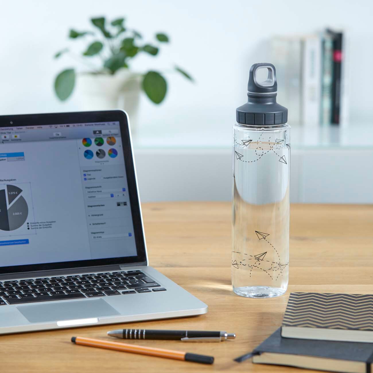 Поддерживайте оптимальный водный баланс всей семьей с многоразовыми питьевыми бутылками Drink2Go. Бутылка на 100% герметична, безопасна и экологична – она выполнена из прочного и легкого тритана и украшена рисунком с бумажными самолетами. Завинчивающаяся крышка открывается двумя способами, а саму бутылку можно мыть в посудомоечной машине.
