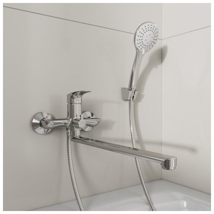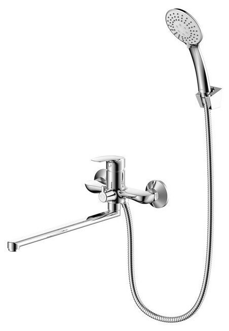 Смеситель для ванны Rora отличается универсальным характером: основной акцент в его дизайне приходится на плавные линии корпуса и классическое цветовое решение. Наличие длинного (35 см) излива позволяет использовать пространство ванны максимально эффективно. Интенсивность и температура потока легко регулируются удобной ручкой смесителя. Поворотный дивертор работает при любом давлении воды, переключая поток воды на большую душевую лейку (∎ 100 мм) или в комбинированном режиме. Ручная лейка из прочного ABS-пластика, ПВХ-шланг (1,5 м) в оплетке из нержавеющей стали и крепеж идут в комплекте. Качественный механизм смешивания воды смесителя Milardo∎ рассчитан на более чем 70 000 циклов работы. Оптимальная толщина никель-хромового покрытия защищает смеситель от образования трещин и сколов, продлевает срок его службы.