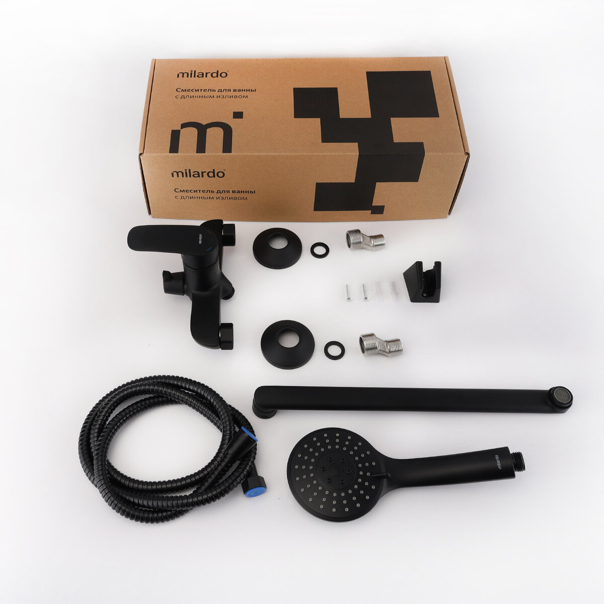 Смеситель для ванны Rora отличается универсальным характером: основной акцент в его дизайне приходится на плавные линии корпуса и трендовый черный цвет. Наличие длинного (35 см) излива позволяет использовать пространство ванны максимально эффективно. Интенсивность и температура потока легко регулируются удобной ручкой смесителя. Поворотный дивертор работает при любом давлении воды, переключая поток воды на большую душевую лейку (∎ 100 мм) или в комбинированном режиме. Ручная лейка из прочного ABS-пластика, ПВХ-шланг (1,5 м) в оплетке из нержавеющей стали и крепеж идут в комплекте. Качественный механизм смешивания воды смесителя Milardo∎ рассчитан на более чем 70 000 циклов работы. Электрофоретическое матовое покрытие делает поверхность смесителя устойчивой к условиям высокой влажности ∎ такой смеситель прослужит дольше и сохранит свой первоначальный внешний вид.