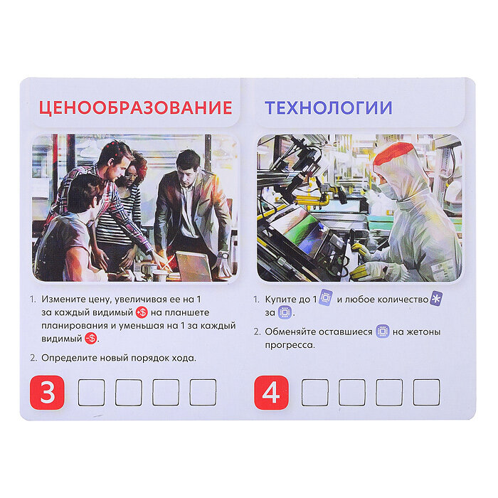 Партия длится пять лет, которые вполне можно уместить в реальный час. Игра состоит из восьми фаз, в которой вас ждут несколько шагов. Вы будете производить смартфоны, заниматься ценообразованием, развивать новые технологии, планировать маркетинговые активности и продавать свою технику. За продажу вы и получаете деньги, хотя иногда финансовый рост вас ждёт в самых неожиданных местах. Победит самый богатый игрок, а сама партия закончится через пять игровых лет.