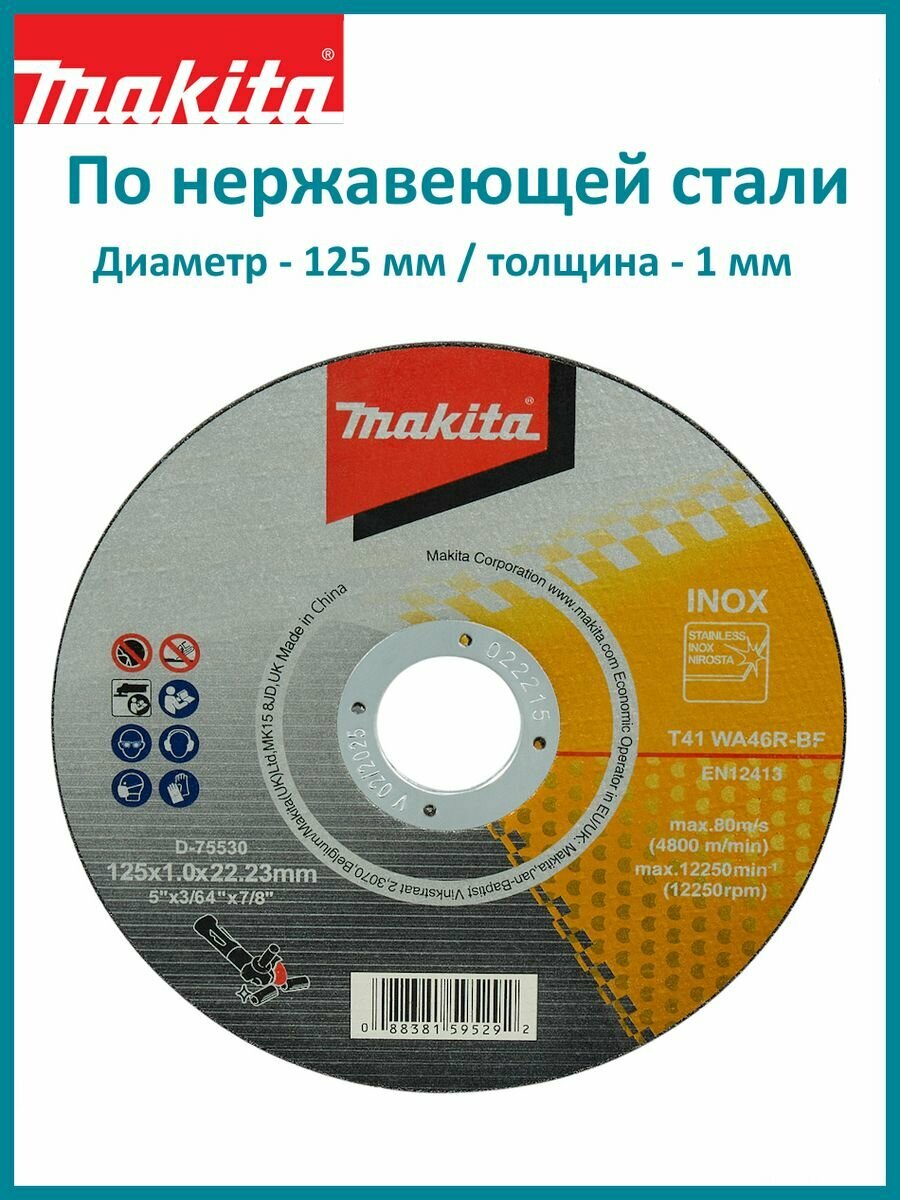 Круг отрезной по нержавеющей стали Makita WA46R 125х1х22.23 (D-75530)