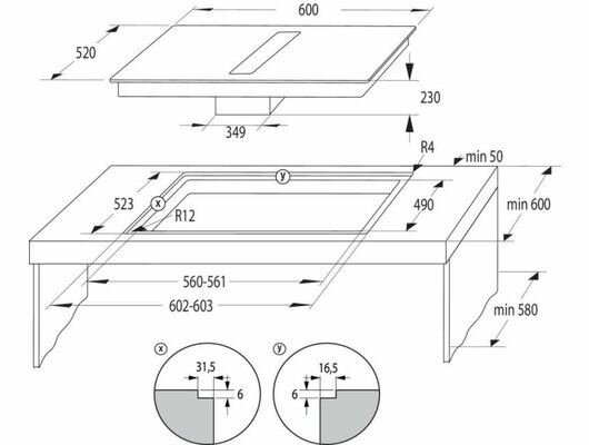 | Размеры ниши для встраивания (ШxГ) | 560 х 480 мм |