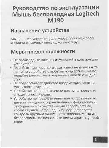 | Источник питания мыши | 1 батарейка AA |