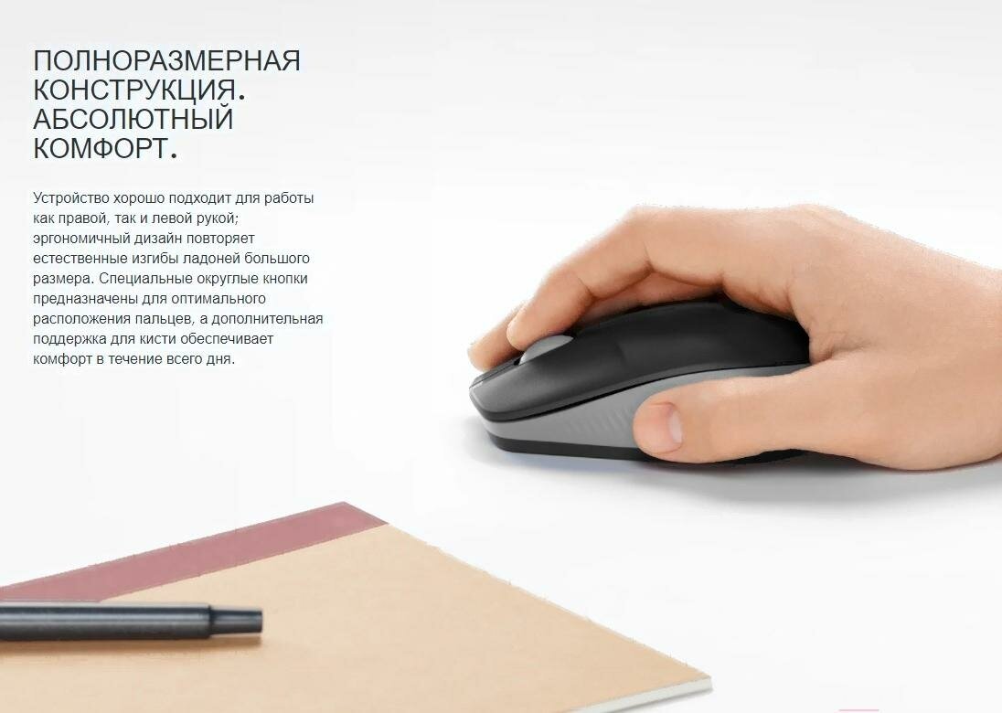 - Размер для большой руки, точность оптического сенсора, долгая работа от батарейки