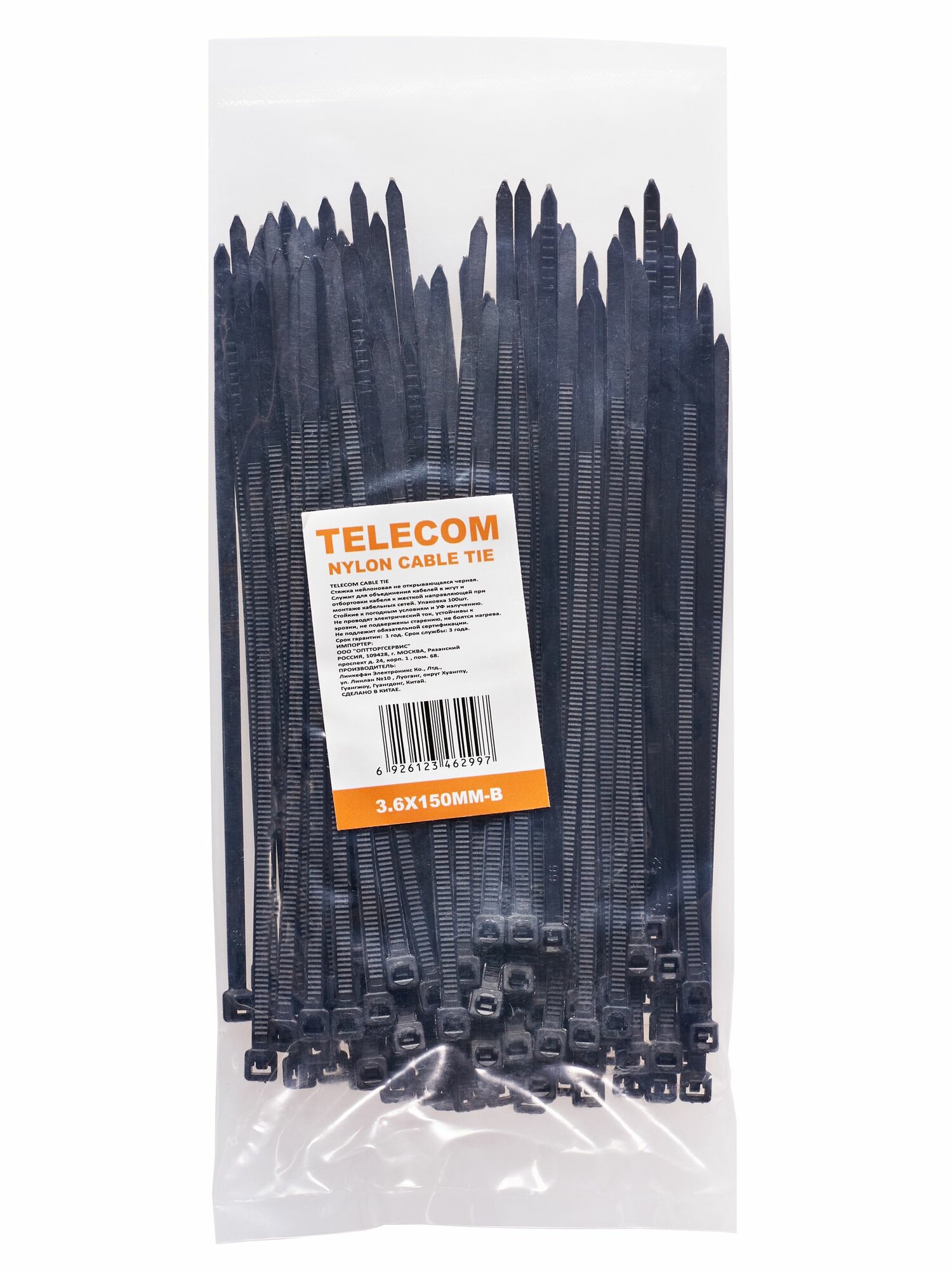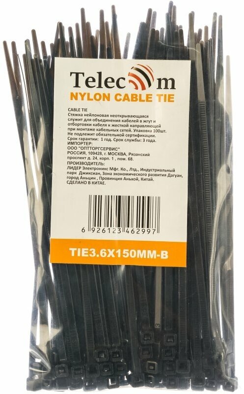 Стяжки 100PCS BLACK TIE3.6X150MM-B TELECOM