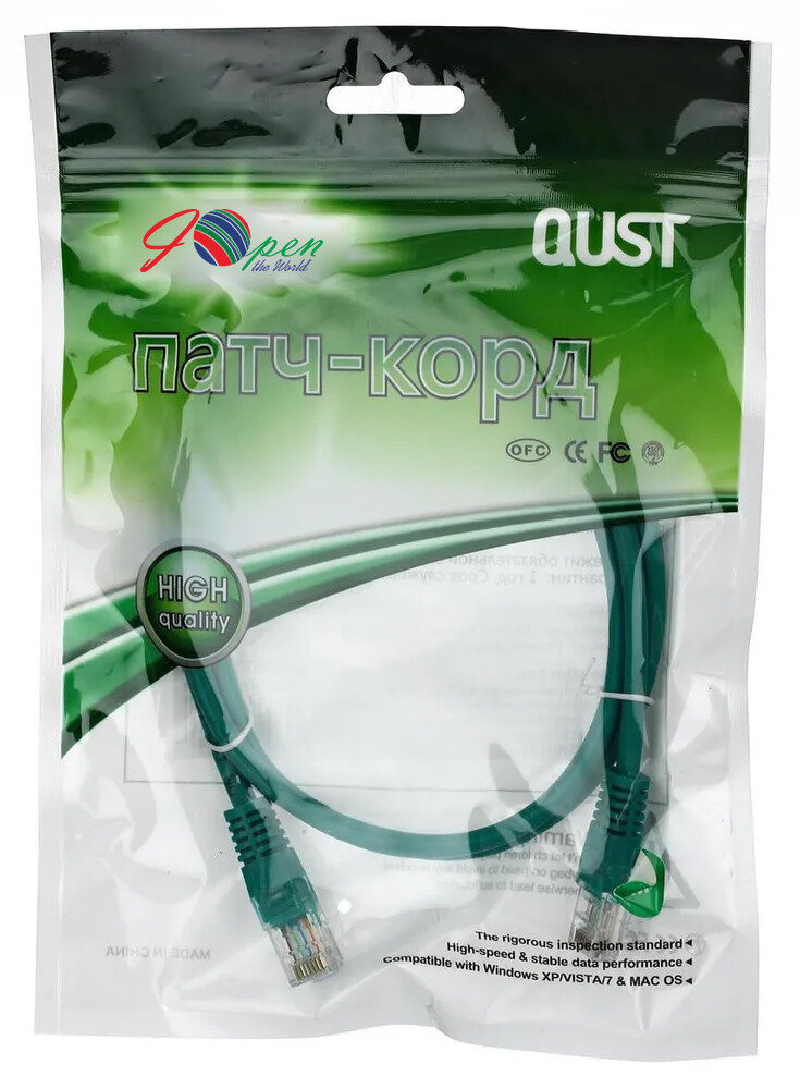 Патчкорд литой Aopen/Qust UTP кат.5е 1м зеленый