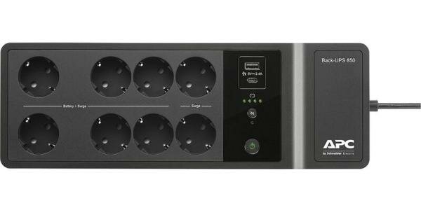 APC Back-UPS ES 850VA/520W, 230V, 8 Schuko (2 Surge & 6 batt.), USB, USB charge(type A,C), Data/DSL protect.,(BE700G-RS, BE850G2-GR analogue), 1 year warranty
