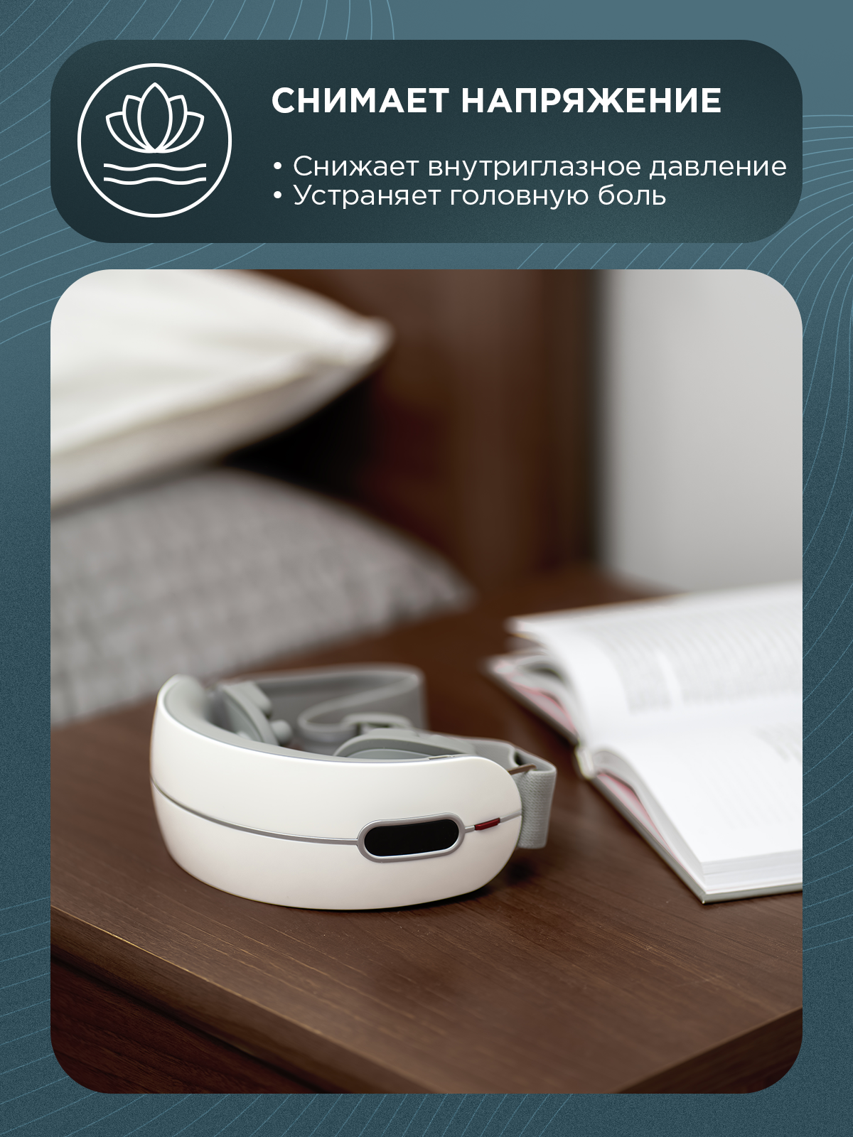 | Массажные зоны | глаза, голова |