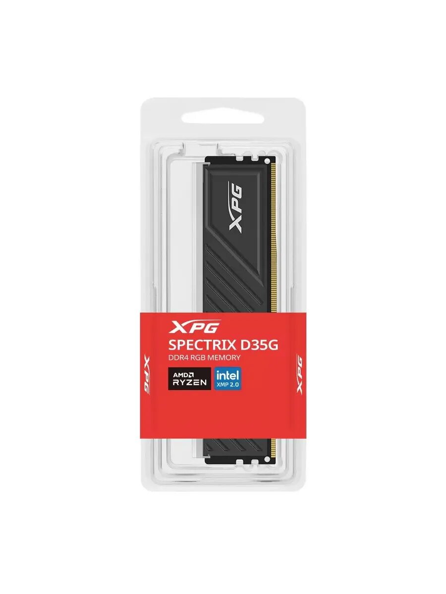 Оперативная память ADATA 16GB ADATA DDR4 3200 U-DIMM XPG Gammix D35G RGB Gaming Memory AX4U320016G16A-SBKD35G black. Она помогает существенно повысить скорость запуска требовательных программ и стабильность в компьютерных играх. Быстродействие ОЗУ достигается за счет тактовой частоты 3200 МГц, высокой пропускной способности и низких задержек. Алюминиевый радиатор выделяется оригинальным оформлением с полосами и треугольной подсветкой RGB. Поддержка профилей AMD EXPO и Intel XMP 3.0 позволяет осуществлять разгон оперативной памяти