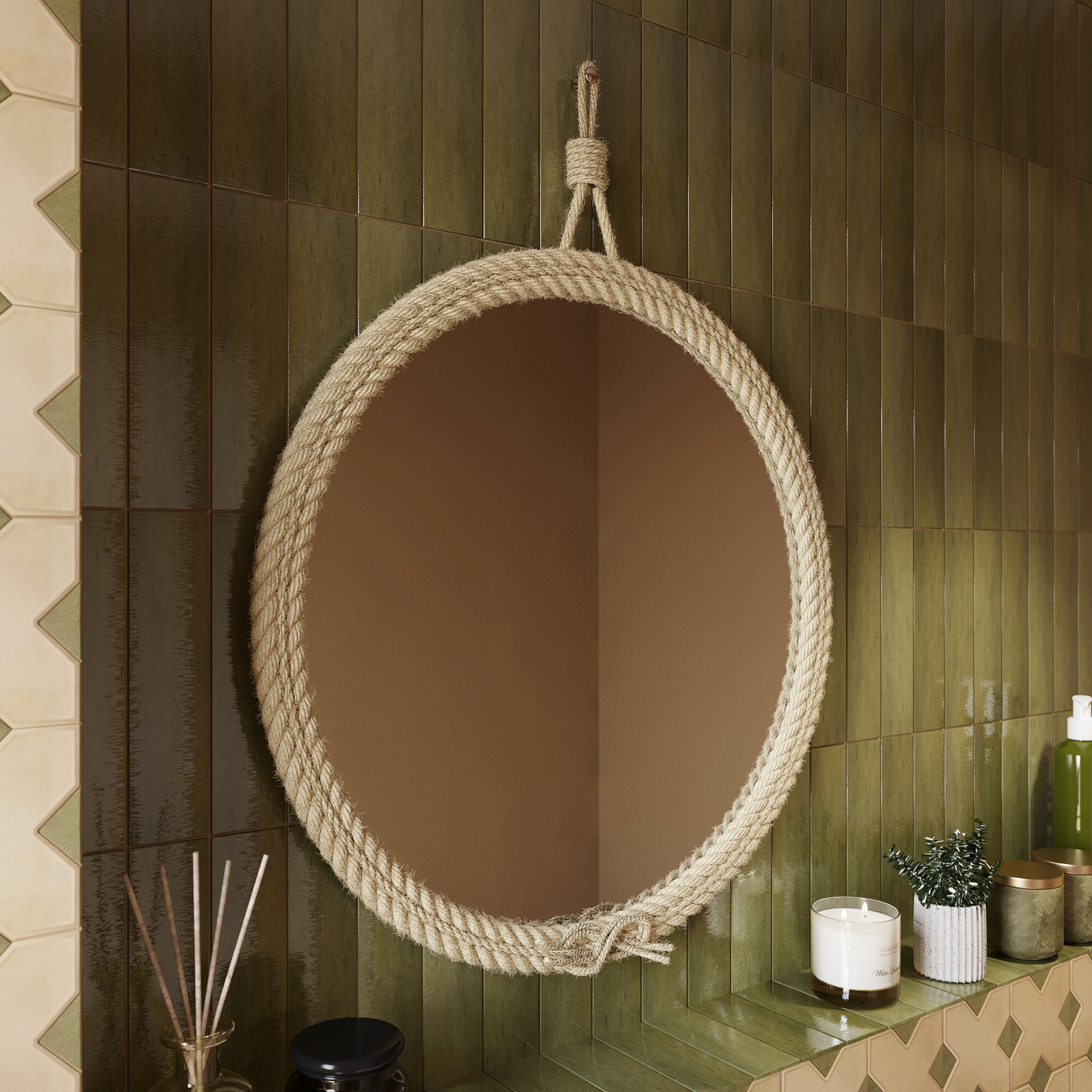 Зеркало круглое STWORKI Орхус ФР-00002477 60 бежевое
