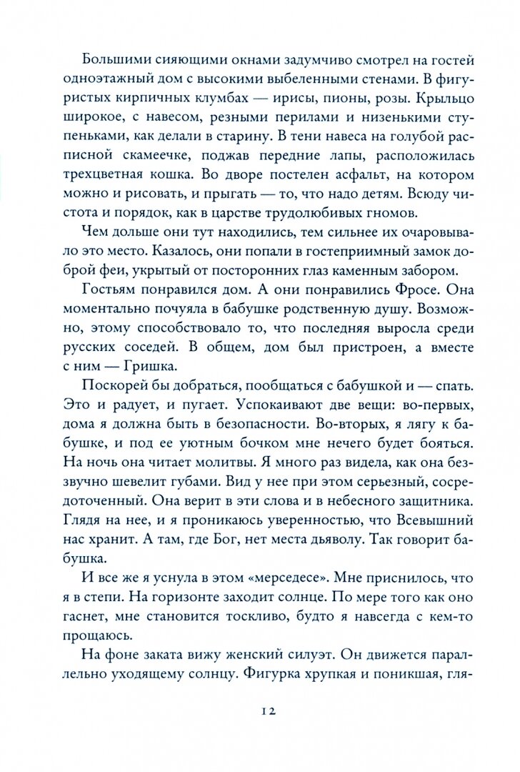 Чрезвычайно захватывающее повествование! После прочтения захотелось окунуться в историю вновь — что я и сделала, чтобы ещё раз прояснить некоторые детали, которые я упустила при первом прочтении. Лёгкий язык автора позволяет глубже прочувствовать историю семьи из Казахстана, приправленную мистикой, мудрыми мыслями, смелыми выводами и закрытым финалом. Зара Камаш удерживала интригу до самого конца, только на последних страницах, наконец, дав ответы на все вопросы и умело завершив приятное повествование. Рекомендую всем, кому нравятся семейные саги, припорошенные магией, необъяснимым и, иногда, даже пугающим…