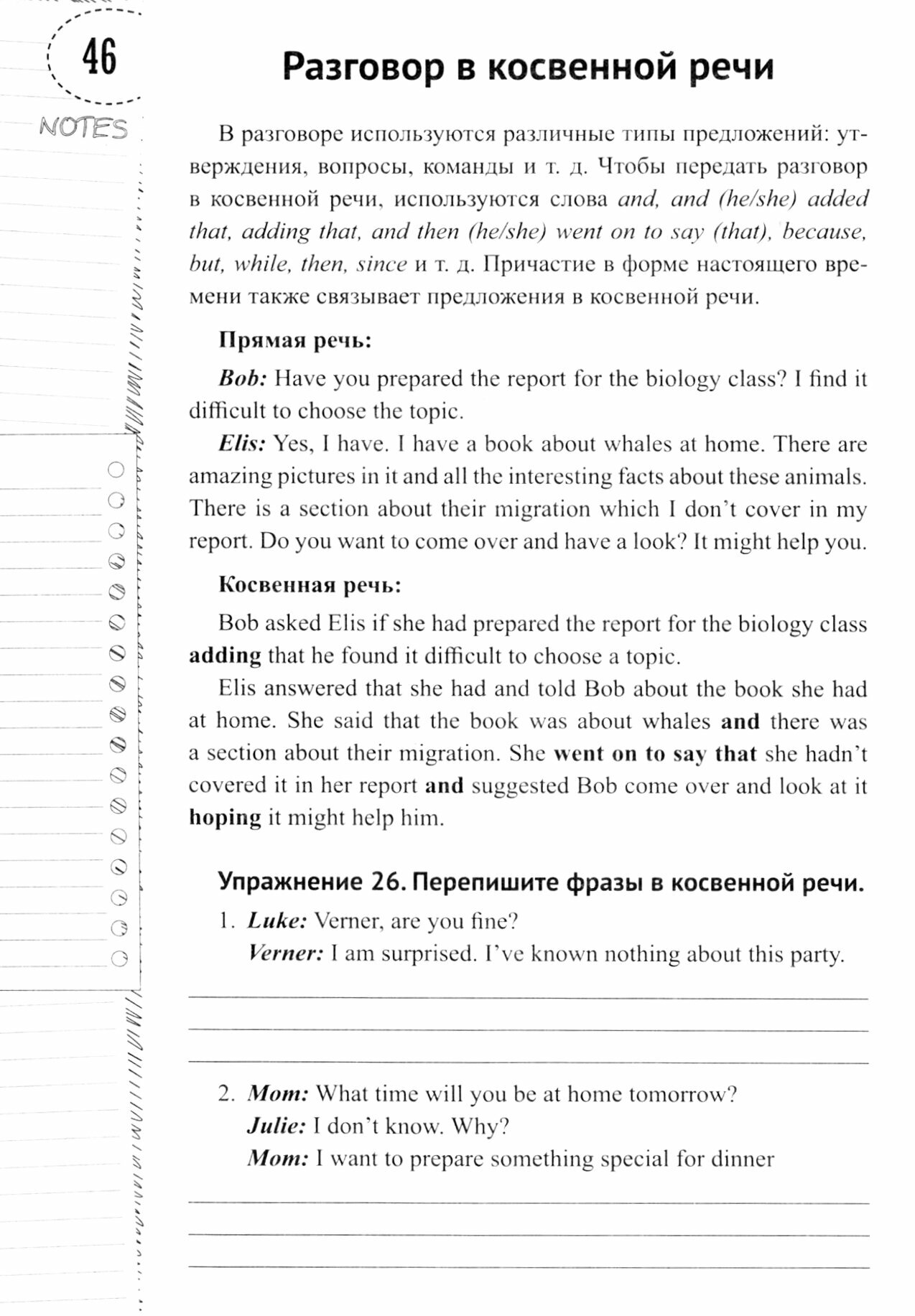 Данное пособие предназначено для формирования навыка построения предложений с косвенной речью. В нём представлены упражнения и диалоги, которые помогут учащимся добиться автоматизма и научиться строить предложения без труда. В пособии содержатся таблицы и объяснения таких грамматических тем, как построение предложения в косвенной речи, согласование времён и употребление глаголов говорения, требующих использования инфинитива и причастия.