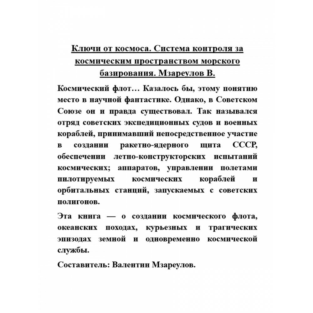 Сервис сравнения цен СкидкаГИД предлагает сравнить цены на товар «Книга: Ключи от космоса. Система контроля морского базирования (Группа авторов); Алисторус, 2023»