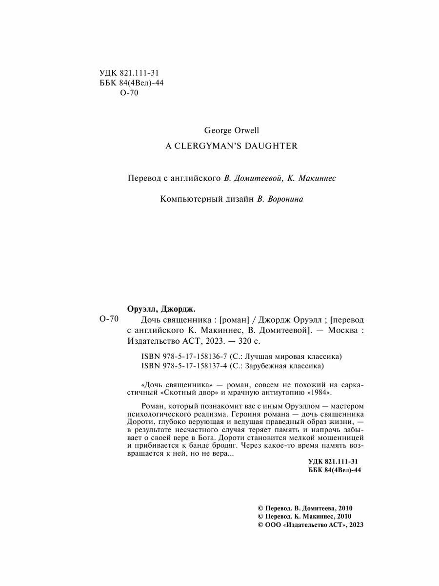 Книга: Дочь священника (Джордж Оруэлл); АСТ, Neoclassic, 2024