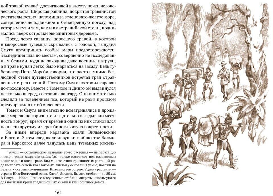 Издание очень даже неплохое. Само по себе приключение Томека Вильмовского сотоварищи в Новую Гвинею издавалось и ранее, здесь фишка - весьма качественные вставки с изображениями учёных - исследователей, менее красивые, но тоже интересные - картинки животных "из Брэма", хотя сами тексты слегка архаичны, например, за акул было досадно:). Сами иллюстрации персонажей и событий понравились не особо, опять или печать нечеткая, или художник упростил качество. В книге кроме приключений есть приложение от автора, мне этот раздел понравился больше основного текста.