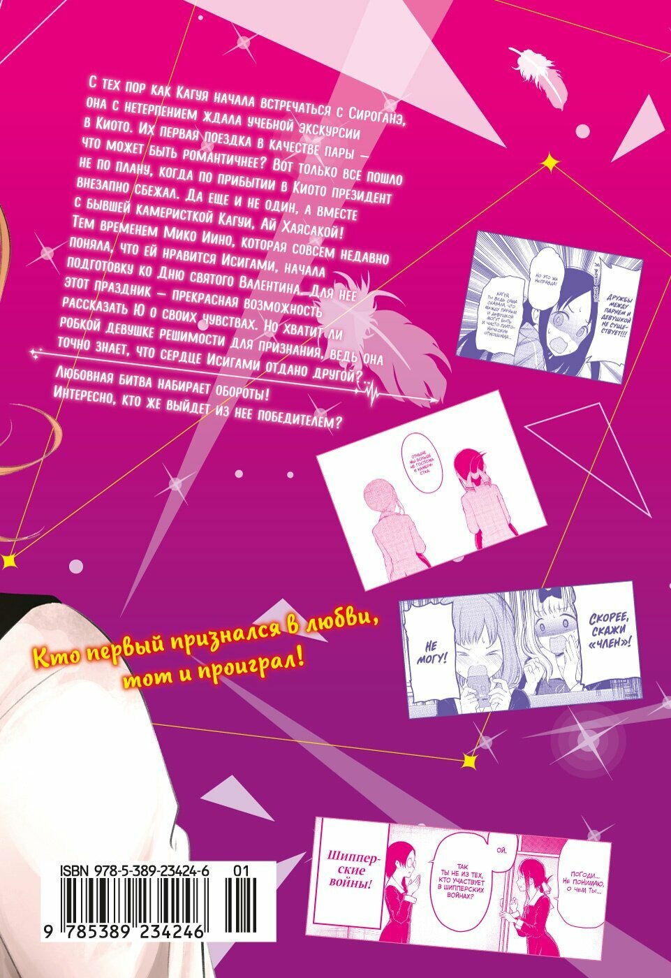 С тех пор, как Кагуя начала встречаться с Сироганэ, она с нетерпением ждала учебной экскурсии в Киото. Их первая поездка в качестве пары — что может быть романтичнее? Вот только все пошло не по плану, когда по прибытии в Киото президент внезапно сбежал. Да еще и не один, а вместе с бывшей камеристкой Кагуи, Ай Хаясакой!