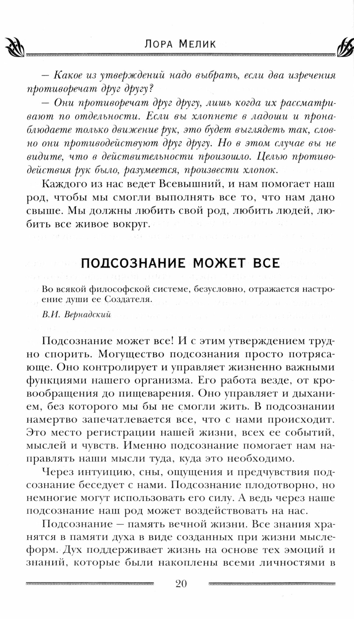 Каждый человек на Земле - частичка своей родовой системы, хочет он того или нет. Успехи и неудачи в текущей жизни заложены не только нашей личной, но и родовой кармой. А значит, чтобы стать здоровым, счастливым и благополучным, необходимо знать, как замолить грехи предков, как избавиться от родового проклятия, как встроиться в родовой канал и как получить благословение ушедших поколений, не перестающих заботиться о своих потомках и на том свете. Помимо иллюстрируемой притчами обширной теории в новой книге Лоры Мелик много практических упражнений и аффирмаций как на принятие родом, так и на приобретение личной силы и уверенности. С таким надежным спутником легко примириться с прошлым и простить согрешивших родственников и не менее легко смотреть в будущее, наполненное поддержкой и принятием.