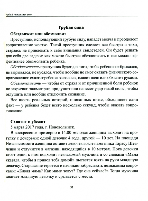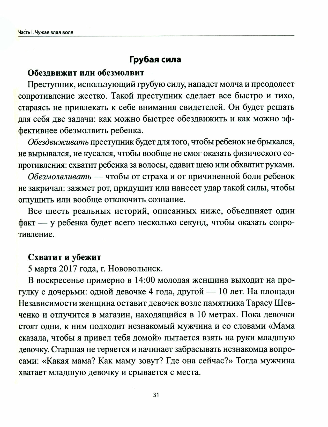 Как врач, отец и специалист по манипулятивным техникам, автор прекрасно разбирается в теме и предлагает изучать её постепенно, проникая вглубь психологии потенциальной жертвы и возможного преступника.