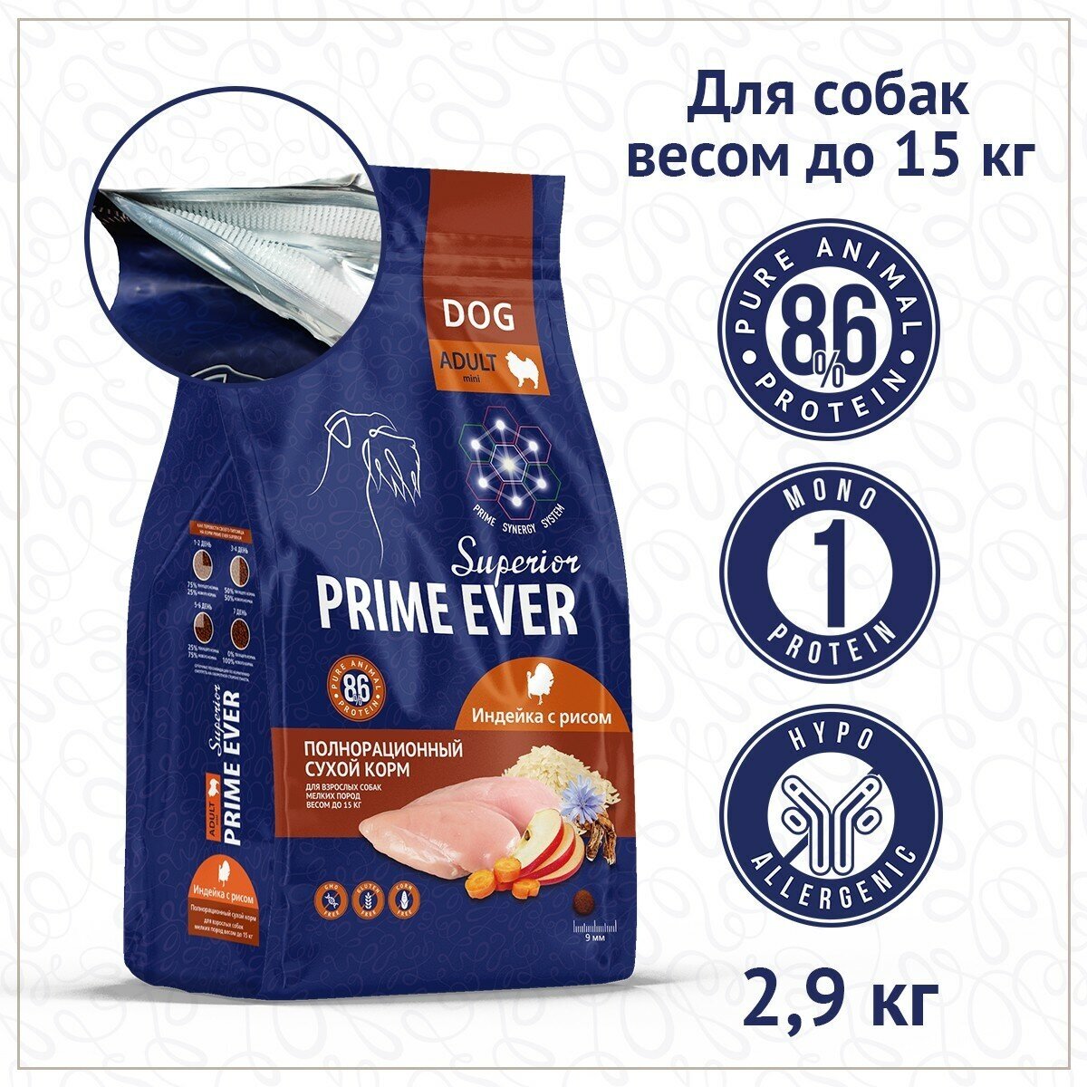 Сухой корм для собак маленьких пород Prime Ever Superior Adult Mini Индейка с рисом до 15 кг 29 кг