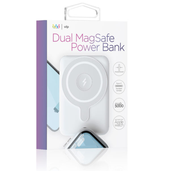 Внешний аккумулятор VLP Magsafe PowerBank 5000 mAh 3A USB-C белый MagSafe PowerBank 5000 мАч, белый