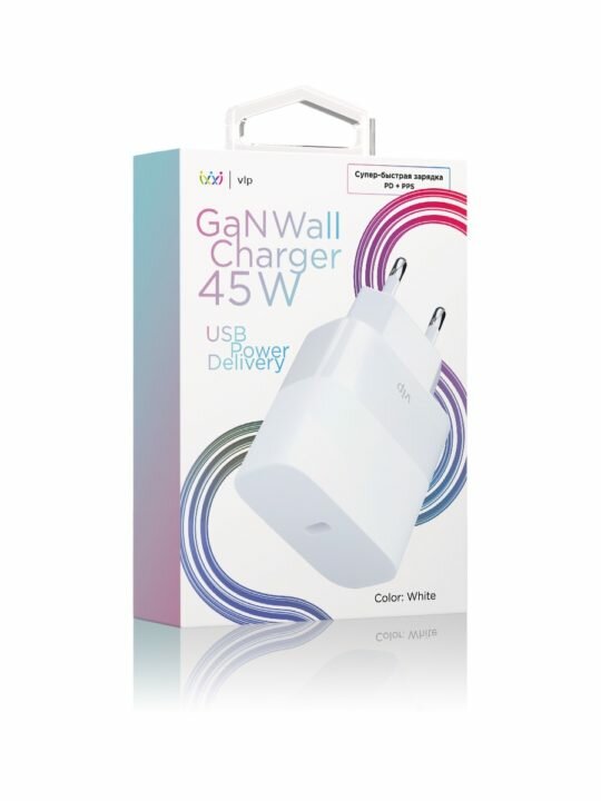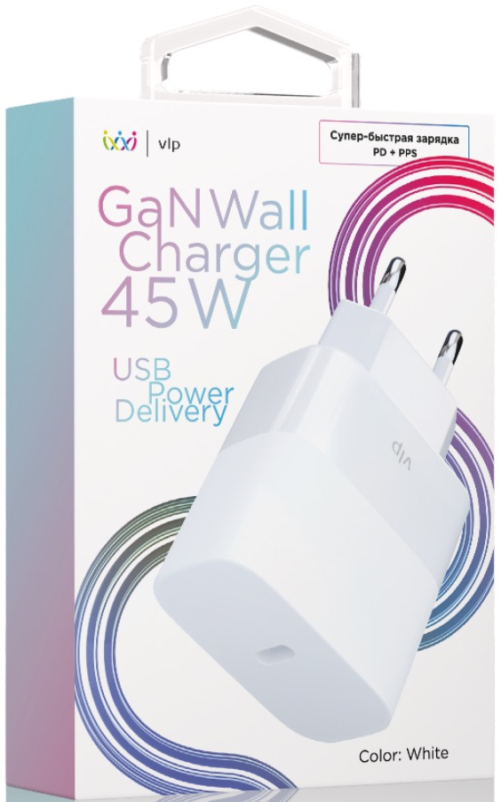 Сетевое зарядное устройство VLP GaN 45Вт USB-C PD PPS белый GaN Wall USB-C (1072001), белый