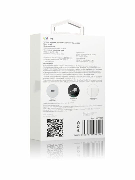 Современное компактное сетевое зарядное устройство в корпусе из огнеупорного пластика обеспечит безопасный и сверхбыстрый заряд вашим гаджетам. Идеально подходят для смартфонов Samsung S series. Максимальная мощность 45 Вт, порт питания - USB-C. Поддерживает актуальные протоколы быстрой зарядки - 2.0 PD 3.0 PDO/PPS. Адаптер создан на основе технологии GaN, поэтому он компактнее современных зарядных устройств по размеру, но в разы мощнее. В основе производства лежит нитрид галлия, который позволяет повысить энергоэффективность и снизить тепловыделение. Благодаря компактной конструкции сетевое зарядное устройство удобно брать с собой и использовать во время поездок. Адаптер имеет универсальную совместимость и подходит к смартфонам, ноутбукам, наушникам, планшетам и другим устройствам. Обеспечивает защиту от перегрева, короткого замыкания, превышения напряжения и тока. Кабель в комплект не входит.