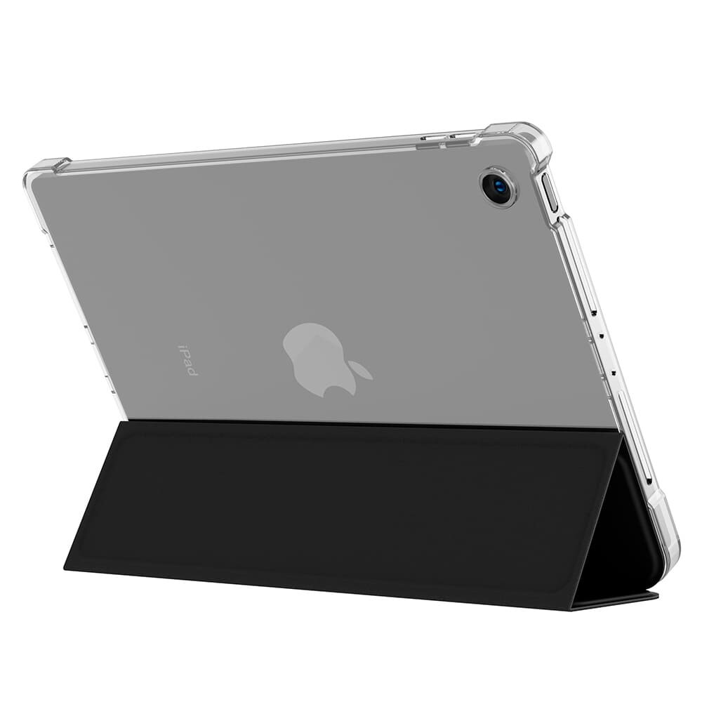 Чехол эффективно защищает iPad от механических повреждений и загрязнений. Верхняя крышка изготовлена из прочной экокожи с покрытием Soft Touch. Подкладка из микрофибры с внутренней стороны крышки обеспечивает дополнительную защиту. Задняя поверхность выполнена из прозрачного матового поликарбоната, подчеркивающего оригинальный внешний вид устройства. Два режима: режим книжки и режим подставки. Специальное отделение для хранения Apple pencil. Автоматический выход из режима сна. Совместим с iPad 7/8/9 поколения.
