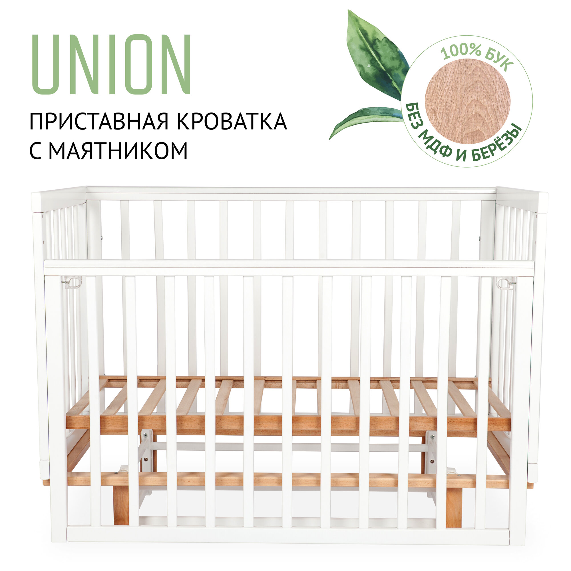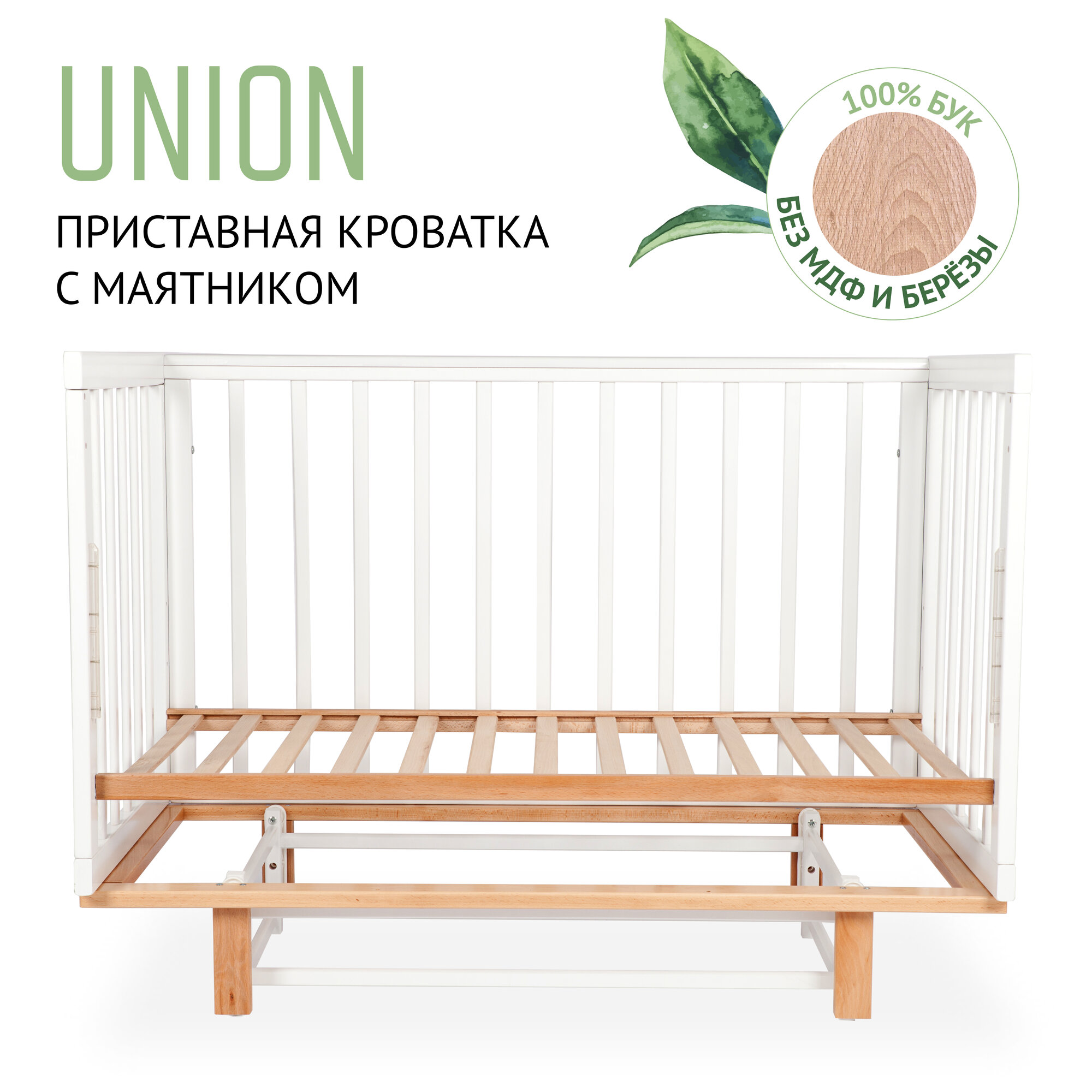 Новая модель кроватки Union. Изготовлена из экологически чистой древесины массива бука, она обеспечивает безопасность и здоровье вашего малыша.