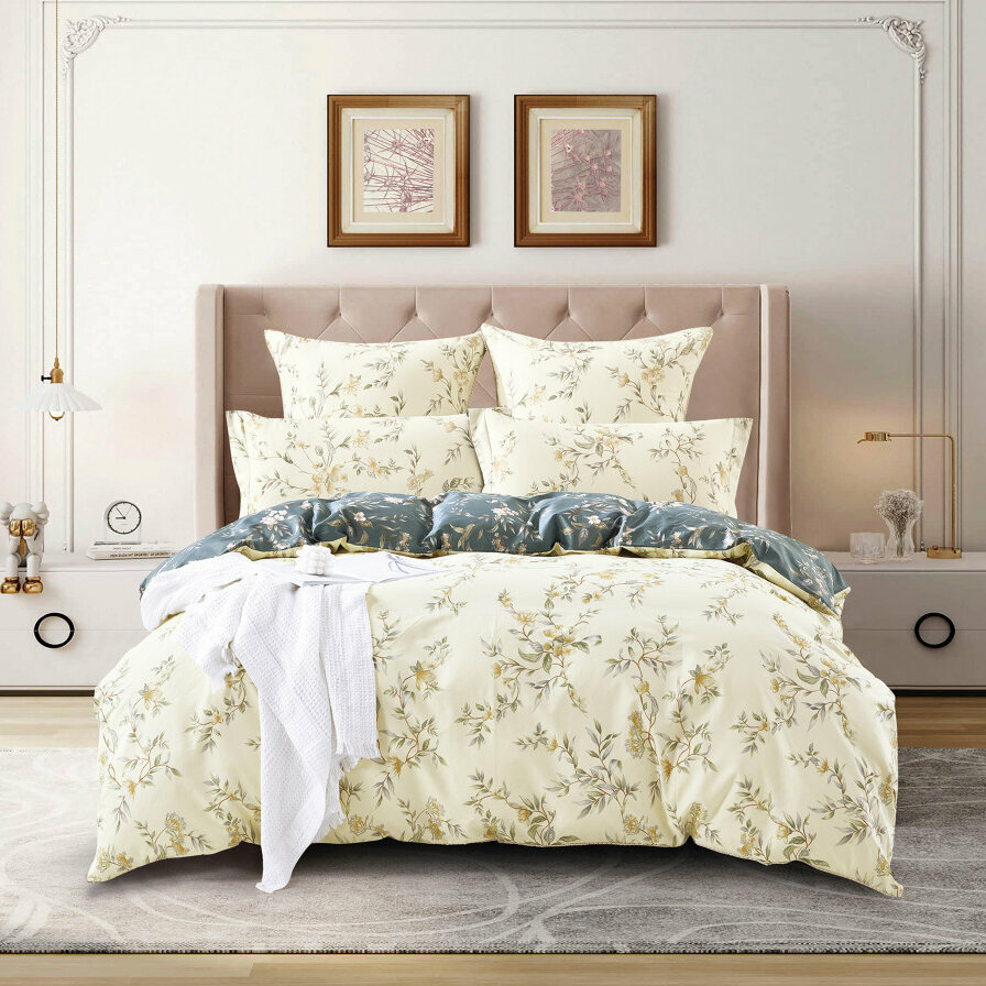 - Комплектация: пододеяльник 200х220 см, простыня 240х260 см, 2 наволочки 50х70 см, 2 наволочки 70х70 см.