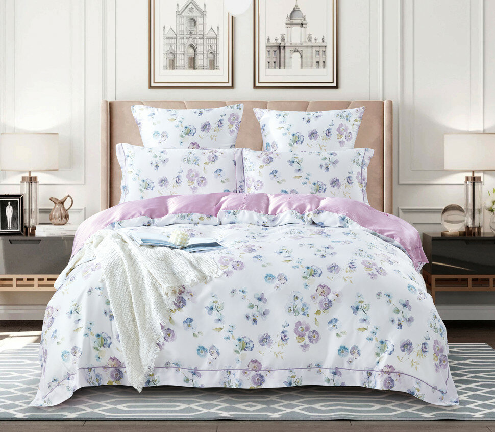 Постельное белье Tonia цвет: белый розово-сиреневый (2 сп. евро) Karteks (kks923472) (размер: евростандарт)