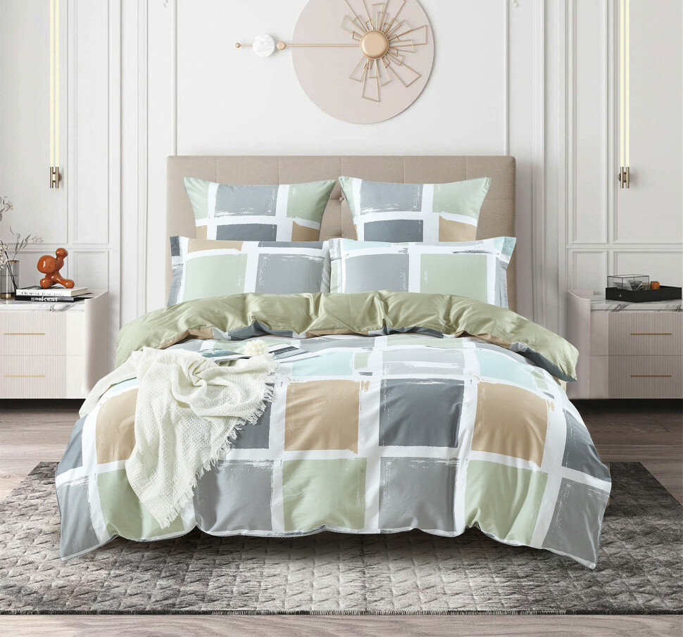 Постельное белье Monika цвет: оливковый голубой бежевый (2 сп. евро) Karteks (kks923481) (размер: евростандарт)