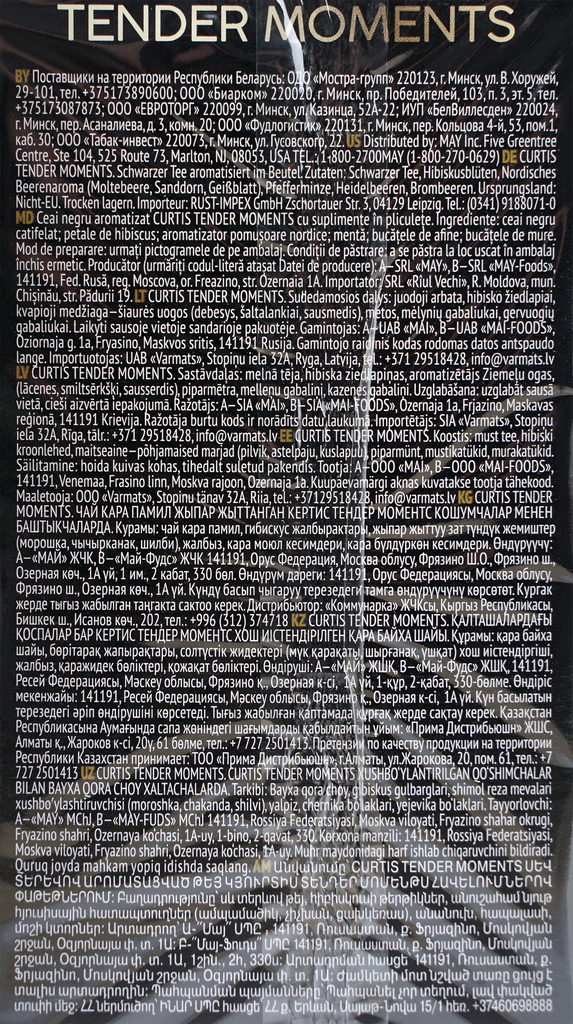 Чай черный Curtis Tender Moments 25*1.5г Май