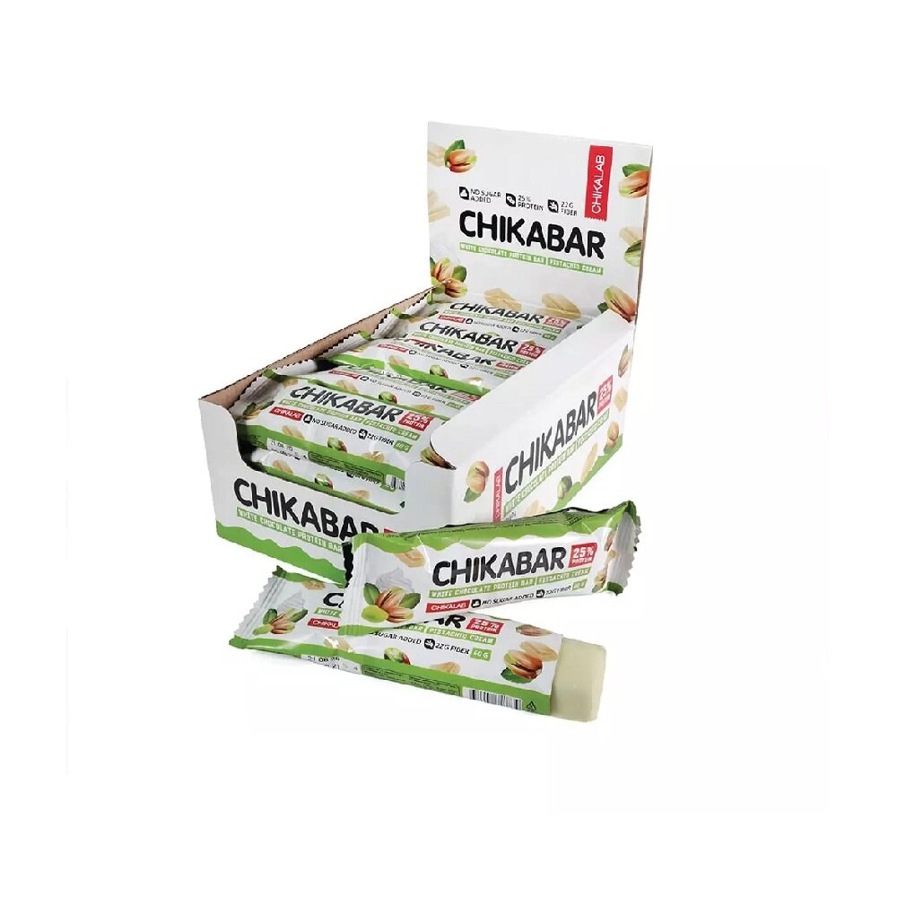 Протеиновый батончик Chikalab подходит в качестве полезного перекуса. Нежный фисташковый вкус. Покрыт молочным шоколадом. Индивидуальная упаковка — удобно брать с собой.