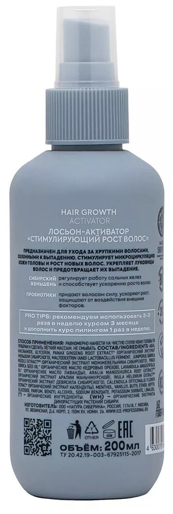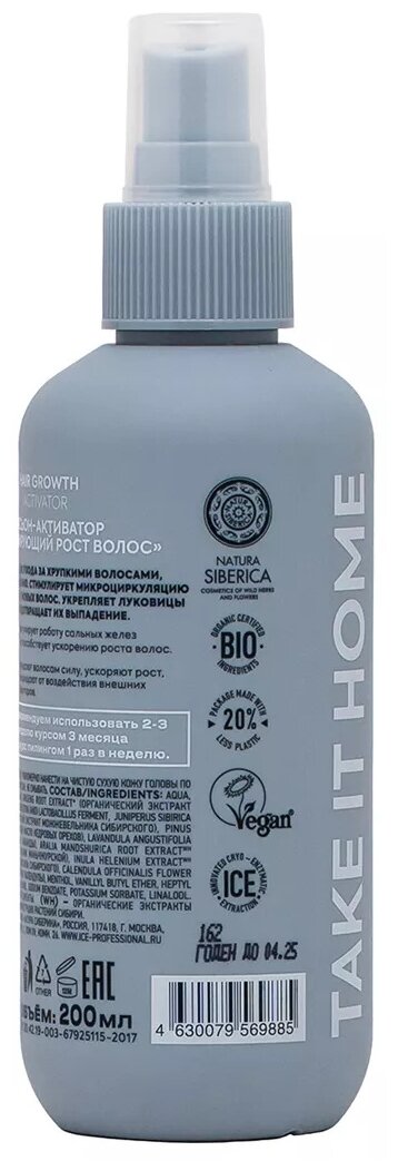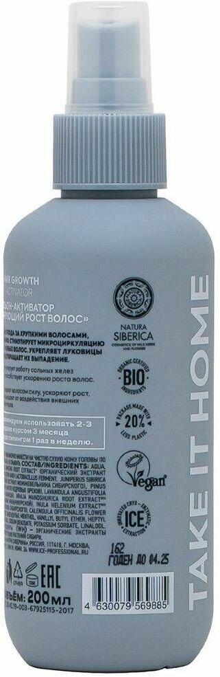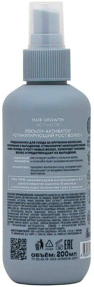 Лосьон-активатор для волос ICE Professional by Natura Siberica Hair Growth Take It Home стимулирующий рост волос 200мл НАТУРА СИБЕРИКА