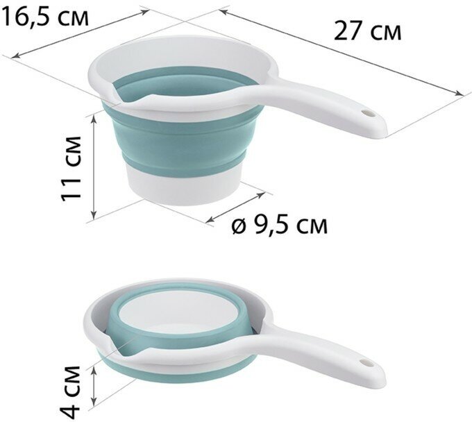 **Ковш Idea Флекс Тиффани** используется в быту (для переливания жидкостей), при выполнении хозяйственных работ на дачном участке. Оснащен объемной рукояткой, которая удобно лежит в ладони и не скользит. Обладает небольшим носиком, обеспечивающим точность наливания жидкости в емкость. После использования легко очищается от загрязнений под проточной водой. Быстро складывается до компактных размеров и не занимает много места.