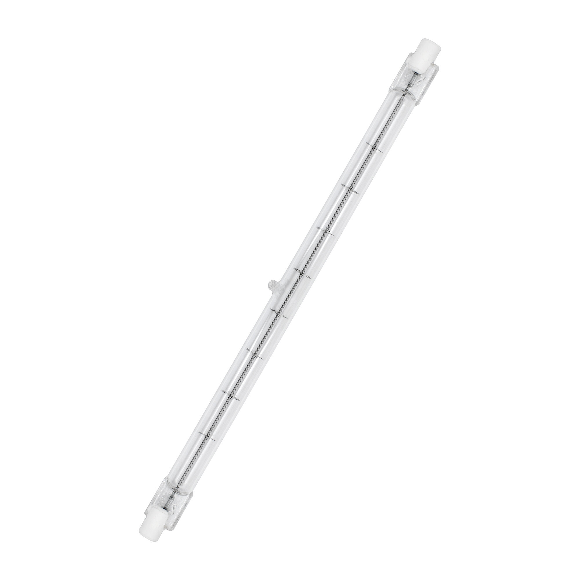 Галогеновая лампочка трубчатой формы с цоколем R7S и размерами 189 мм по высоте и диаметром в 10 мм обладает мощностью в 1000 W, благодаря чему она может осветить 125 кв. м. Изделие рассчитано на использование в сети с переменным напряжением в 220-240В.