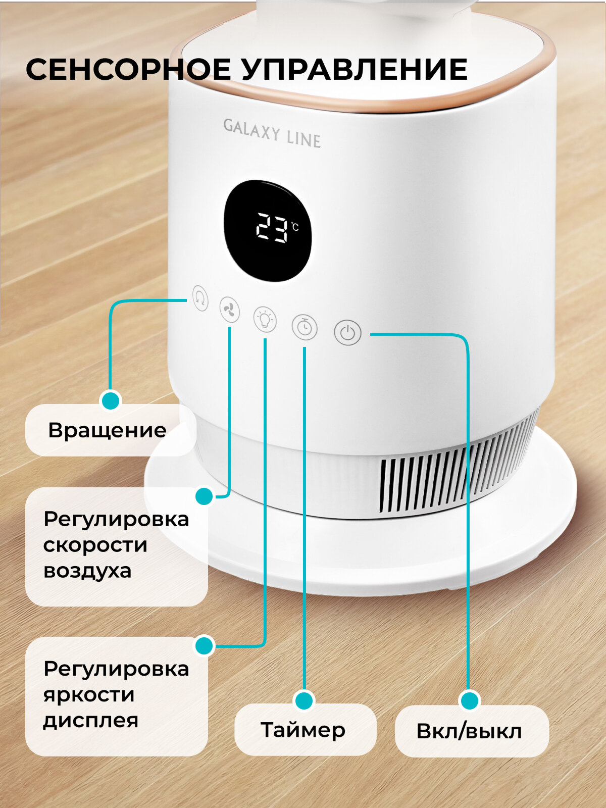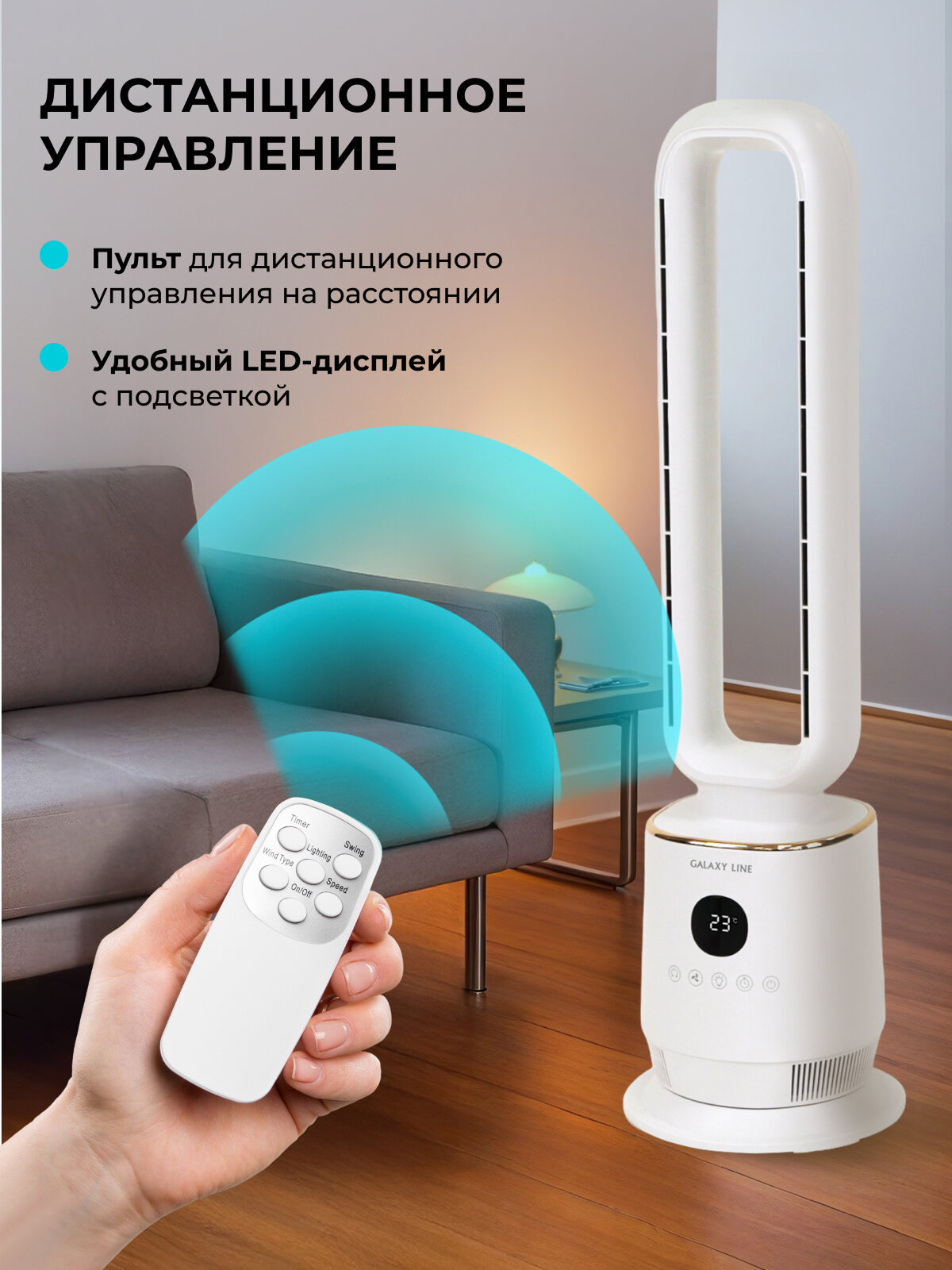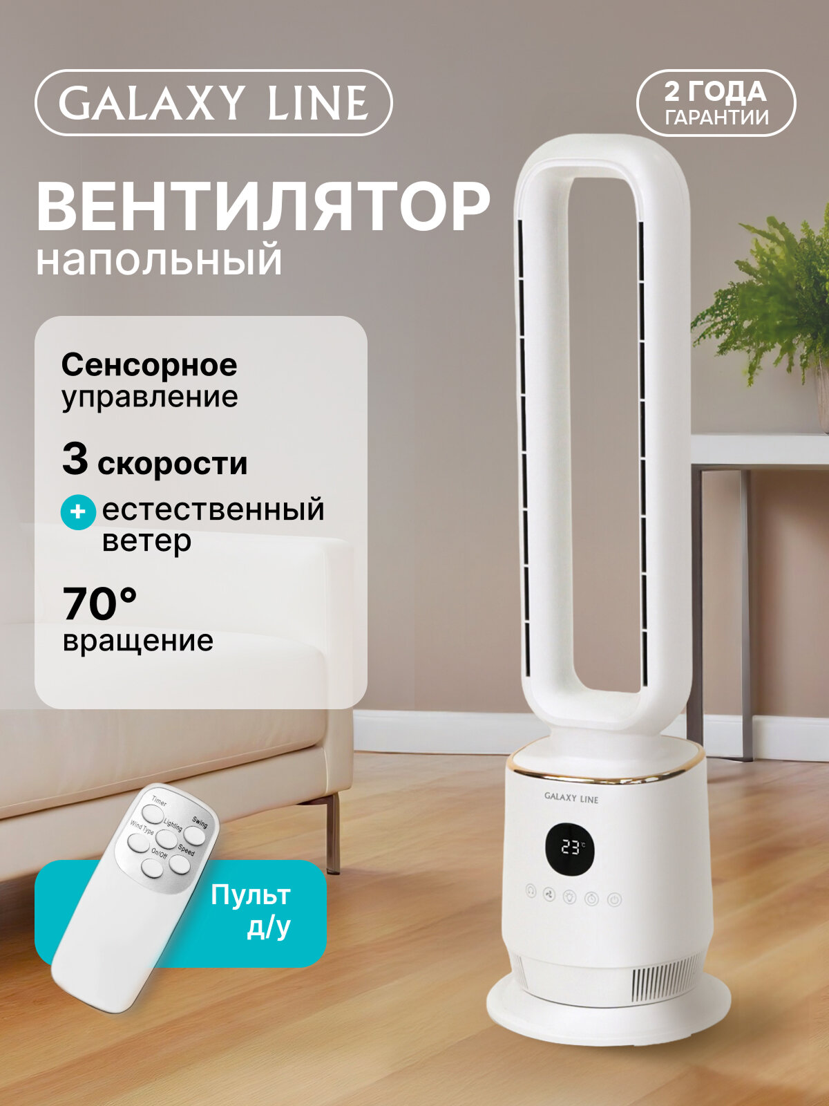 Вентилятор Galaxy LINE GL8111 белый мощность 60Вт 3 уровня скоростей Программируемый Пульт ДУ Таймер Сенсорный