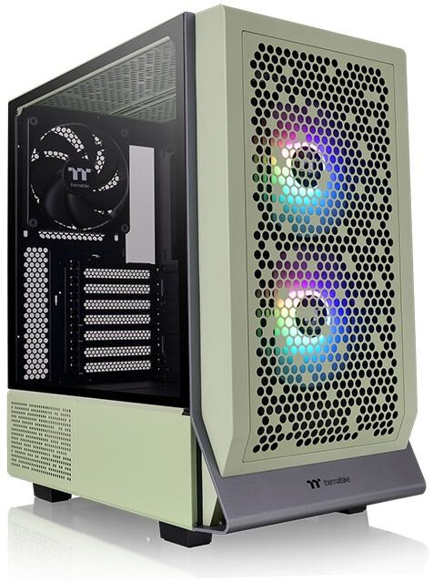Производитель предусмотрел перфорацию лицевой панели, верха, частично боковин и дна. В сочетании с тремя производительным 140 мм вентиляторами Thermaltake CT140 компоненты внутри корпуса получили хороший обдув. Исключение составляет только зона за поддоном. Подсветка дает эффектный внешний вид.