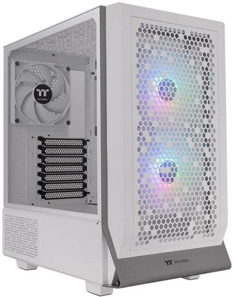 | Прочие особенности и свойства | Корпус формата Mid Tower — Ceres 300 TG ARGB Snow с превосходными характеристиками охлаждения комплектуется двумя вентиляторами CT140 ARGB с возможностью синхронизации подсветки с материнскими платами производства ASUS, GIGABYTE, MSI и ASRock. Панели корпуса имеет перфорацию более 55%, что обеспечивает наилучший приток холодного воздуха. Более того, в корпус можно установить до пяти 140-мм вентиляторов или семи 120-мм вентиляторов, а также разместить один 360-мм радиатор на передней части и один 280-мм радиатор на верхней., , Максимальна длина видеокарты: до 340 мм (с установленным радиатором спереди) или до 370 мм (без установленного радиатора спереди)., Поддержка материнских плат: 6.7" x 6.7" (Mini ITX), 9.6" x 9.6" (Micro ATX), 12" x 9.6" (ATX), 12" x 13" (E-ATX) до 330.2 мм шириной., Поддержка накопителей |