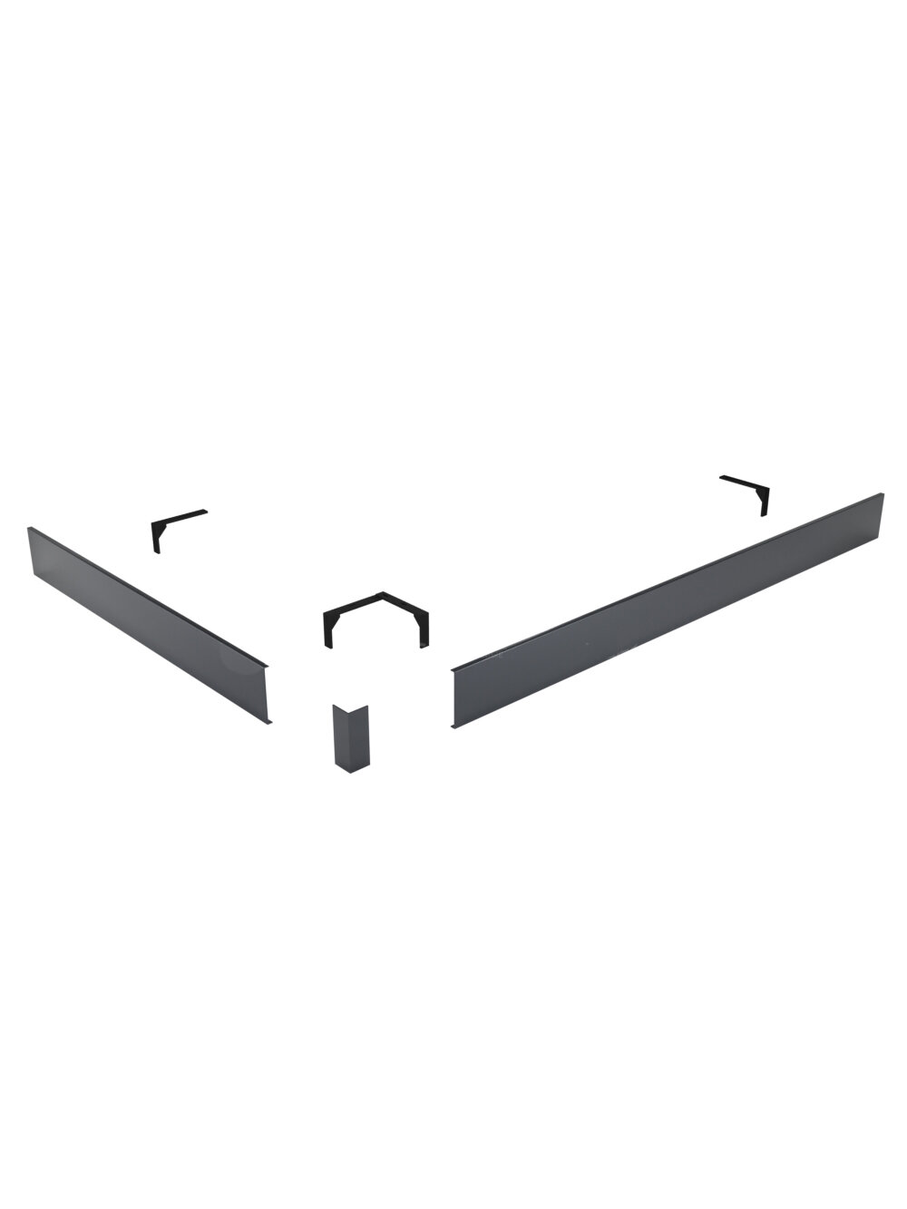 Комплектация: 2 экрана (фронтальный и боковой), соединительный уголок, крепление к ножкам на которые устанавливается поддон.