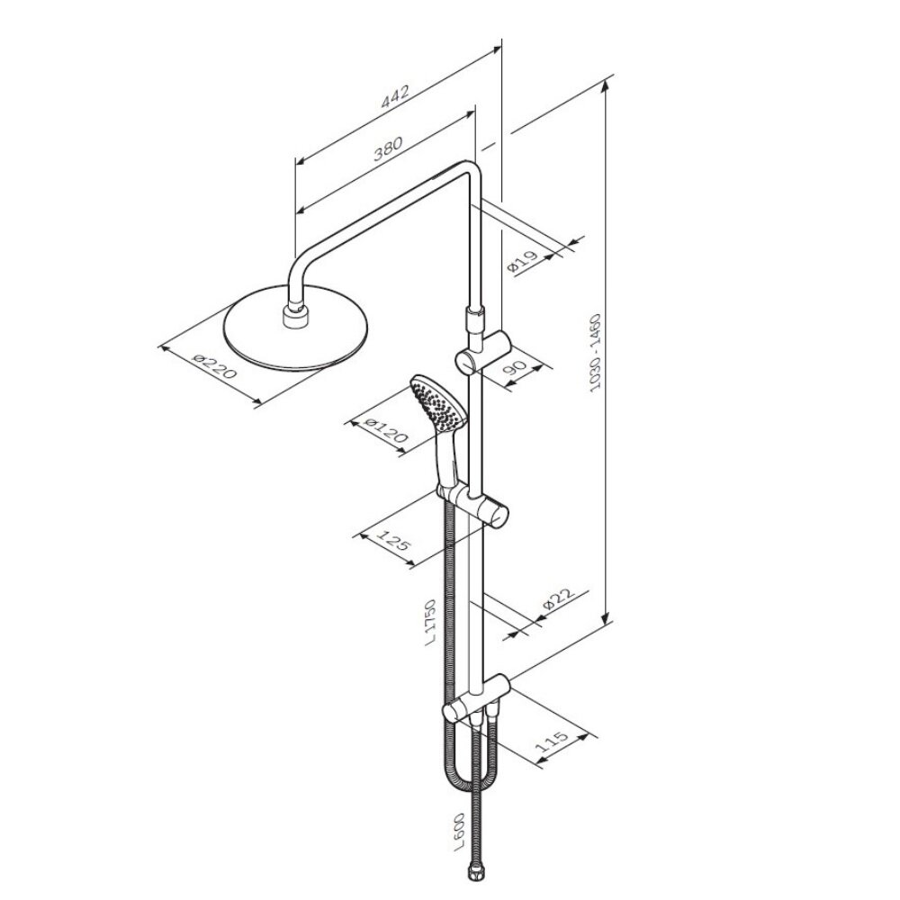 | Габариты верхнего душа | 220 |
