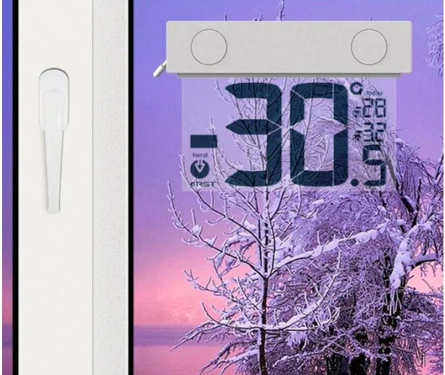 Современная оригинальная модель уличного термометра с прозрачным дисплеем. Крепятся на окно с внешней стороны в любом месте. Крупные контрастные цифры. Система контроля тенденции изменения температур. Система автоматического определения минимальной и максимальной температур за текущие сутки.