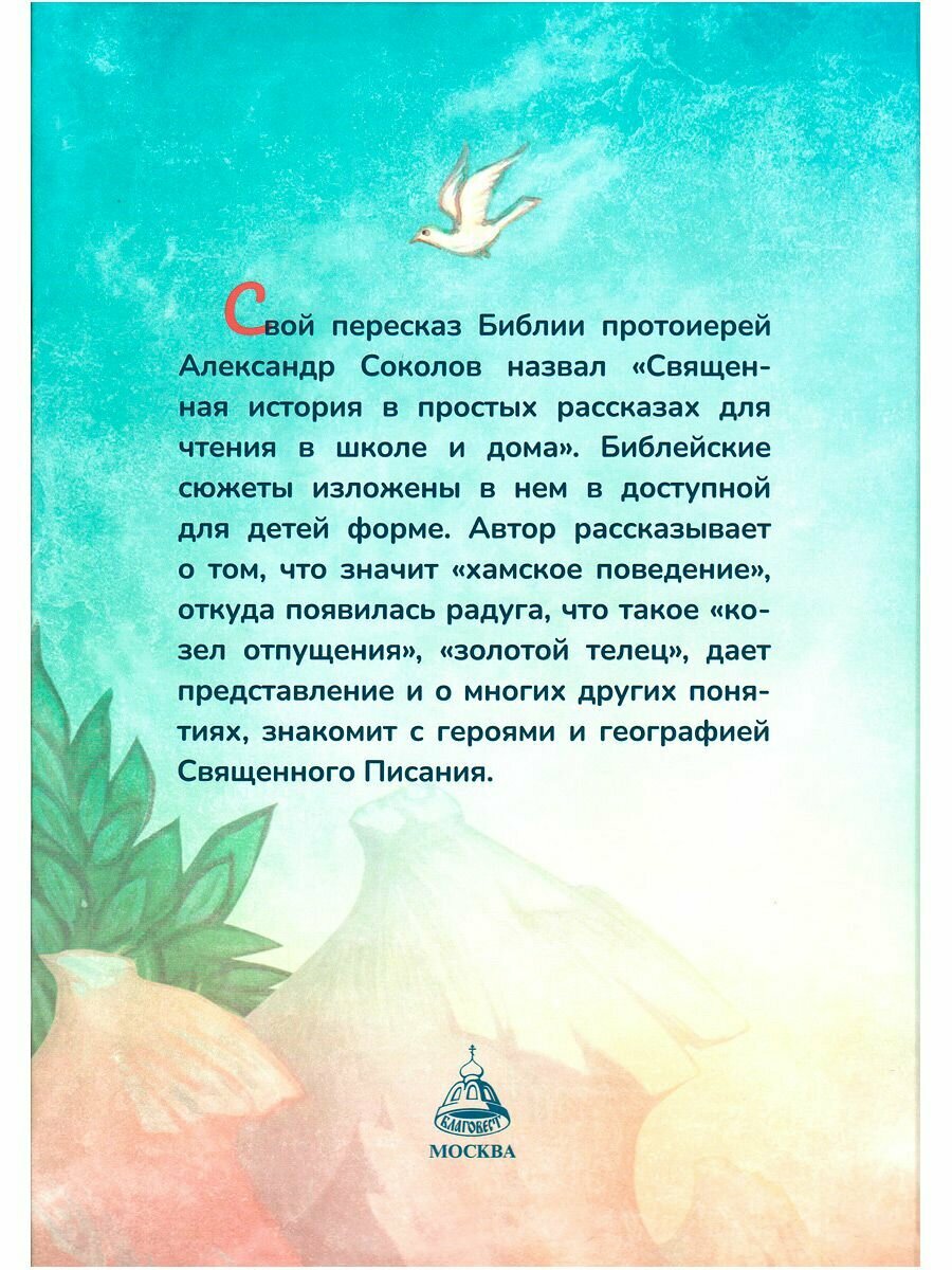 Книга известного священника Александра Соколова в доступном для каждого человека изложении познакомит детей и их родителей со всей библейской историей – от сотворения мира и первых людей до пришествия Господа Иисуса Христа на землю, создания Им Христианской Церкви для спасения всех нас и условиях, которые позволяют людям войти в Царство Небесное, где пребывают Бог и все святые.