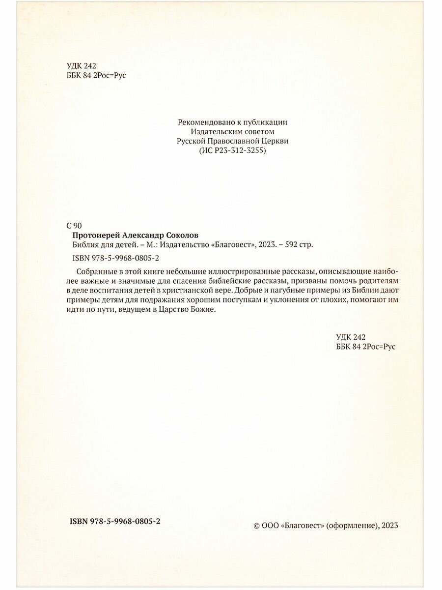 Книга: Библия для детей (Соколов А., протоиерей); Благовест, 2023