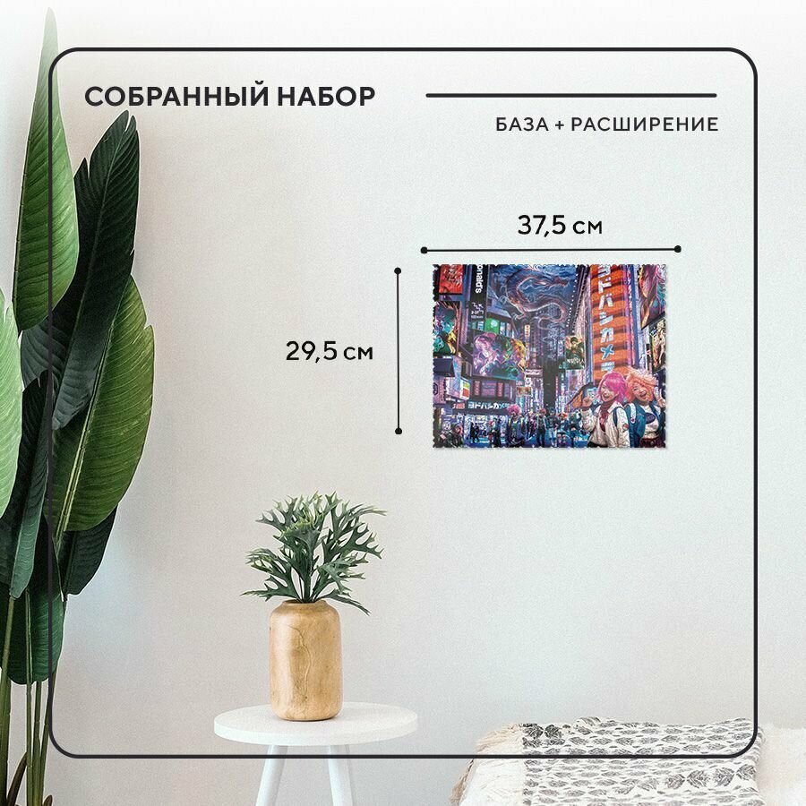 В наборе основной пазл (189 деталей), и дополнение (140 деталей). Дополнение увеличивает базовый сюжет пазла "Ночной Токио" (№ 11006) на 140 деталей, позволяя расширить иллюстрацию в 1,5 раза.