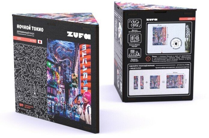 Деревянный фигурный пазл Ночной Токио 189 деталей Zufa